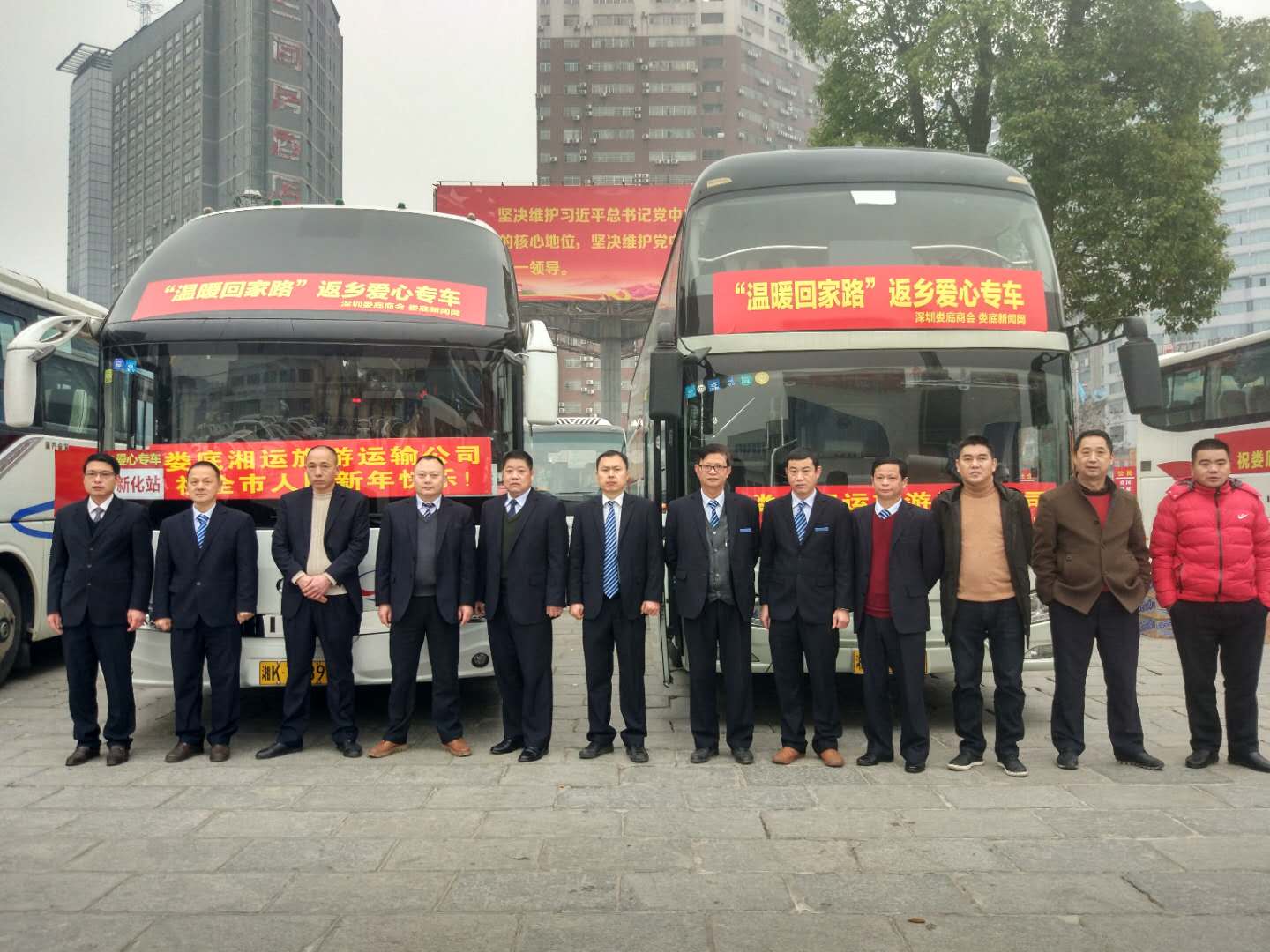 參加"溫暖回家專車″活動的公司管理人員和駕駛員