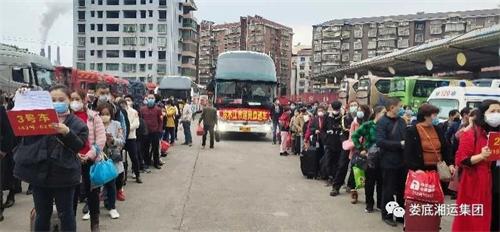 為貫徹落實中央和省、市關(guān)于疫情防控和全力做好農(nóng)民工返崗運輸服務(wù)保障的決策部署,針對農(nóng)民工返崗生產(chǎn)企業(yè)復(fù)工緊迫的情況,在市委市政府、行業(yè)主管部門的大力支持以及各縣市人民政府和交通、人社等部門的精心組織下,我市啟動“點對點,一站式”客運包車,助力農(nóng)民工安全有序返崗。作為承擔各縣市農(nóng)民工返崗復(fù)工包車運輸任務(wù)的主力軍——婁底湘運集團,從2月18日開始,我司各客運單位已調(diào)度70臺次定制包車,分20批安全運送1662名婁底、新化、漣源、雙峰、冷江籍農(nóng)民工前往長沙瀏陽、浙江義烏、福建、廣州、東莞、貴州、?诘鹊胤祶弿(fù)工。