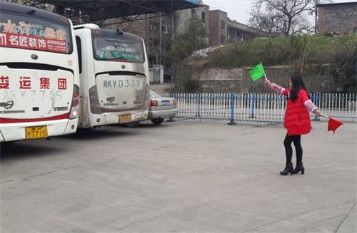 下圖為:“彩虹橋”優(yōu)質(zhì)服務(wù)班陳丹認真細心的指揮婁底車輛倒出發(fā)班車庫,指名倒車的穩(wěn)妥方位,確保安全發(fā)班出庫。
